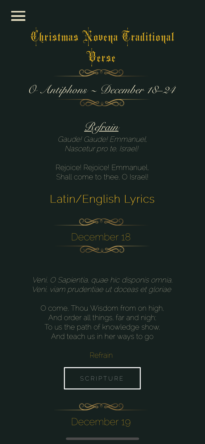 We hope the 33 days of prayers and novenas offered within this app inspire you to reflect on and enrich your observance of the Advent and Christmas seasons. Our further hope is that your practice will serve as an example to others.