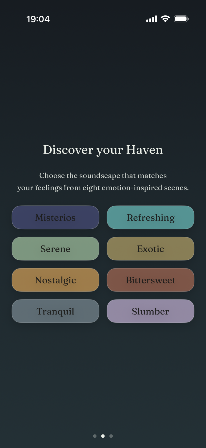 Echo Haven offers 8 scenes, organized by emotion—