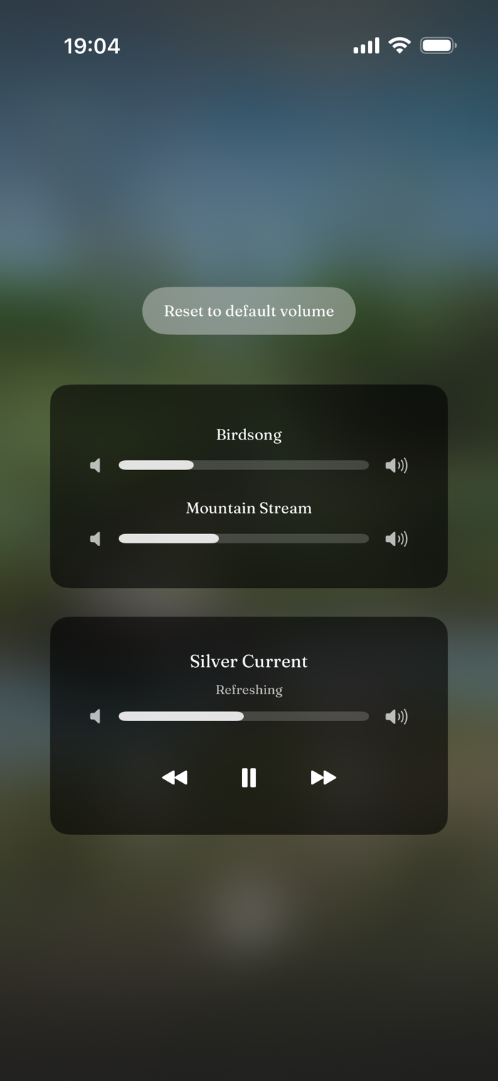 - Adjust layer volumes individually: birds, water, wind, and more