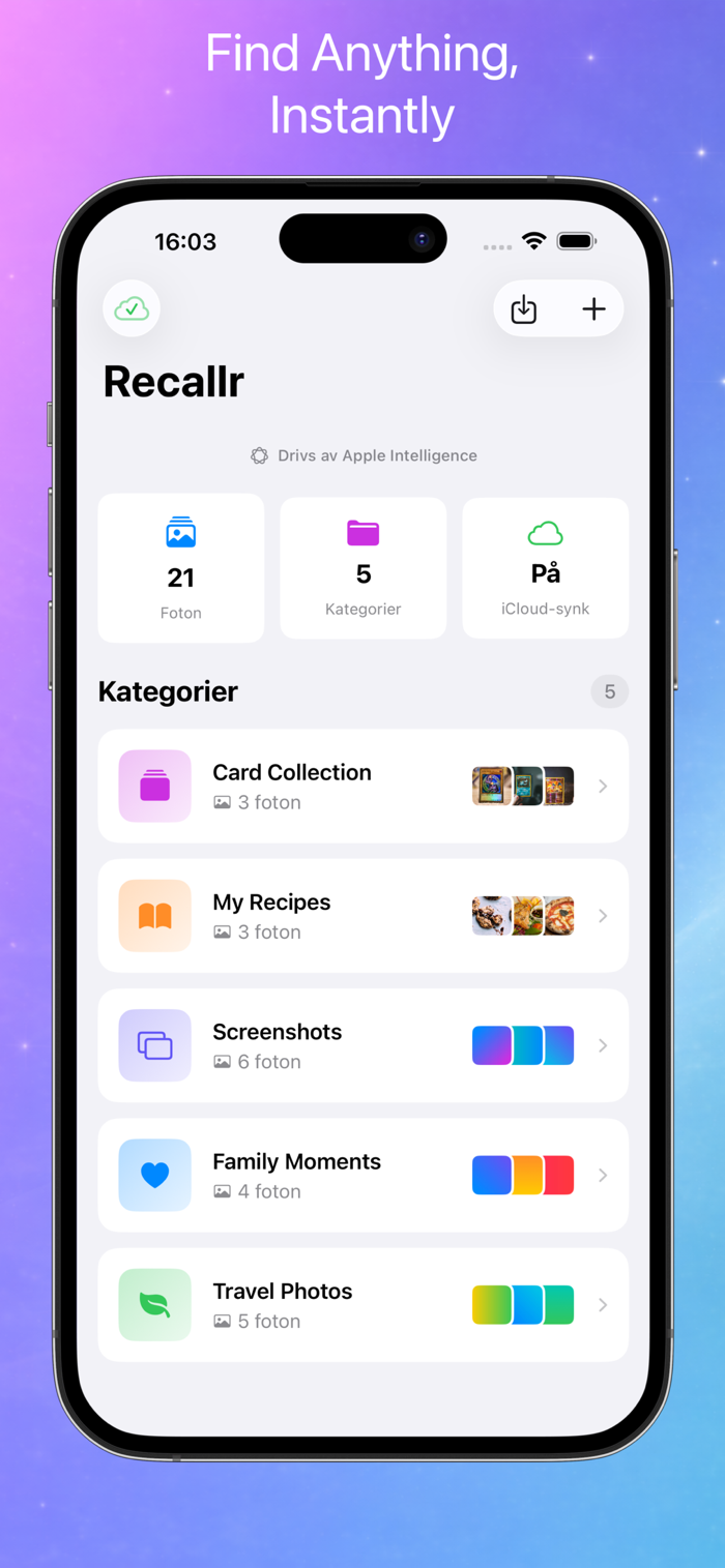 Just share it to Recallr Catalog — and it’s automatically stored, categorized and synced safely with iCloud.