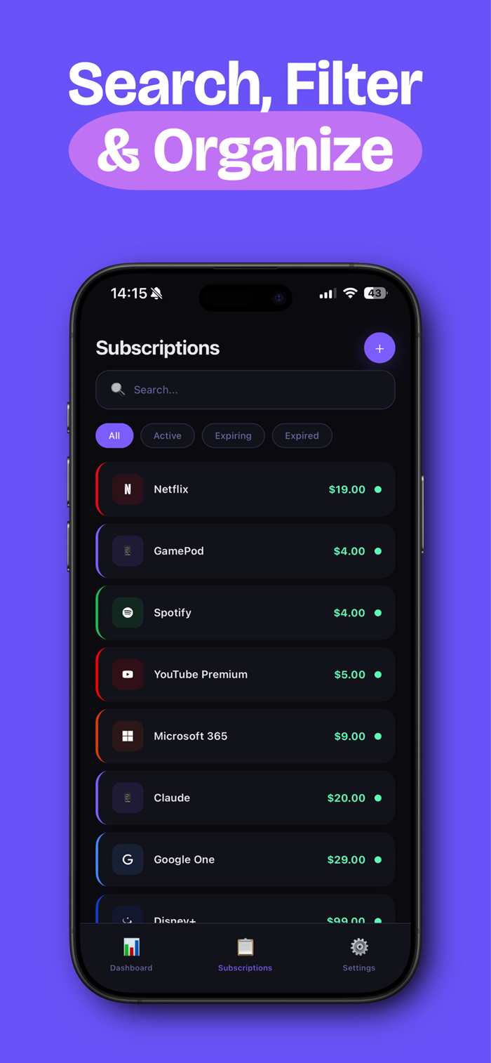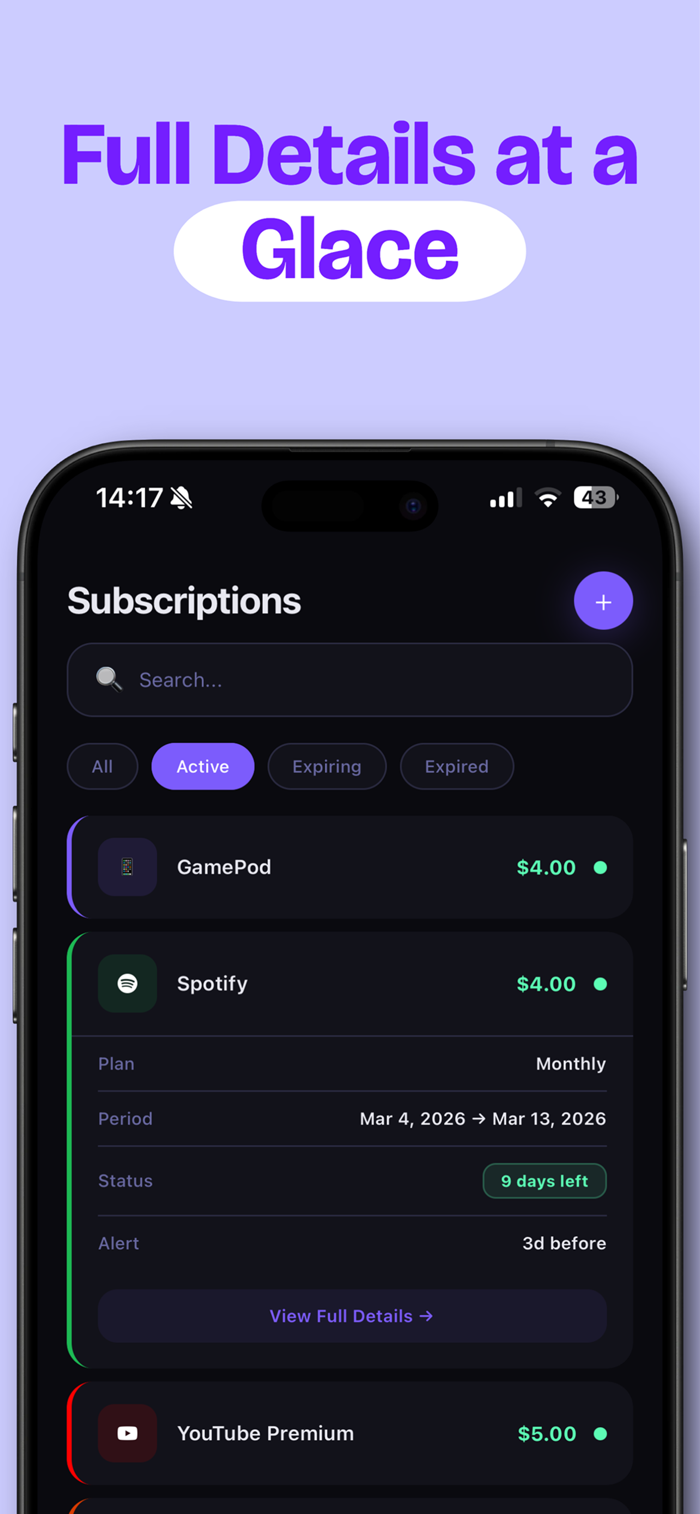 掌控订阅开支,有条理管理,避免意外收费