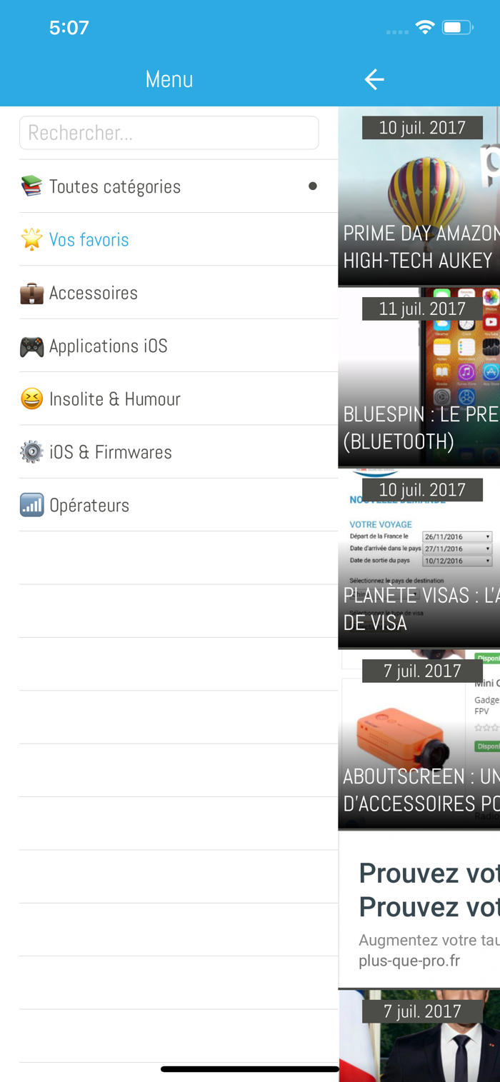 - Un accès à toutes les catégories du site Worldissmall.fr (Accessoires, Applications iOS, Insolite & Humour, iOS & Firmwares, Opérateurs)
