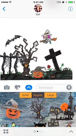 这款产品能将万圣节元素融入信息。它首个提供手绘贴纸,有小、中、大尺寸,还有动画背景。可先发送空白贴纸,按喜好构建场景,发送单张贴纸后,在之前贴纸内拖入其他贴纸,还能像缩放照片一样捏合改变贴纸大小,尽情打造喜爱的万圣节场景,享受创作乐趣。