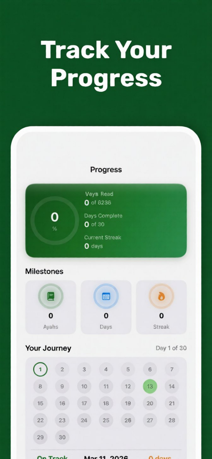 QuranIn30助您30天读完《古兰经》,也可按自身节奏。提供个性化每日阅读计划,能追踪阅读连贯性,养成持续阅读习惯。有个性化阅读计划可自选节奏,含完整《古兰经》文本,有阿拉伯文与英文对照,有音频朗诵,还有经注与学习工具、祈祷时间、进度追踪、书签与笔记等功能,部分高级功能需内购。