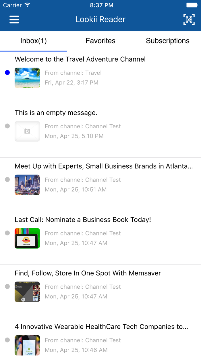 Lookii Reader allows you to view your Lookii Channel subscriptions on your mobile devices. You can view all messages from all Channels in your Lookii Inbox.