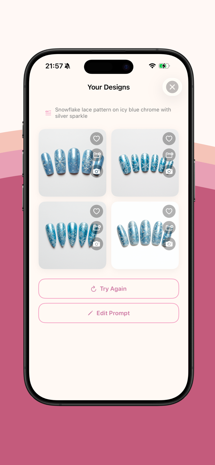 Design your dream nails with AI — in seconds.