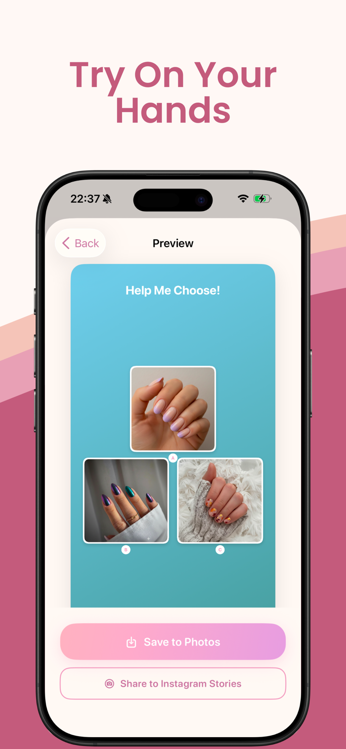 Perfect for your next salon appointment, nail inspiration boards, or asking friends "Which should I get?" with built-in Instagram story exports.