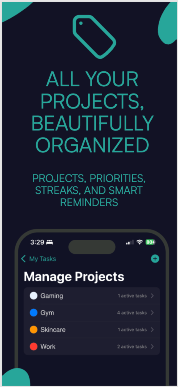Unlimited Projects: Organize every aspect of work, home, and side hustles.