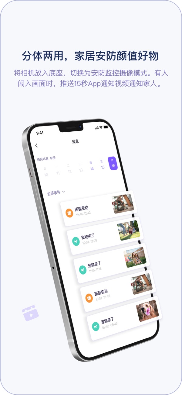 一款既可创意拍摄,又可看家的两用影像设备,不仅可以拍家人、拍宠物、拍风景,还能「我入镜」。录像、安防看护双模式随心切换,手机大屏全程预览遥控,提供更简洁便捷的视频创作体验,视频分享快人一步。