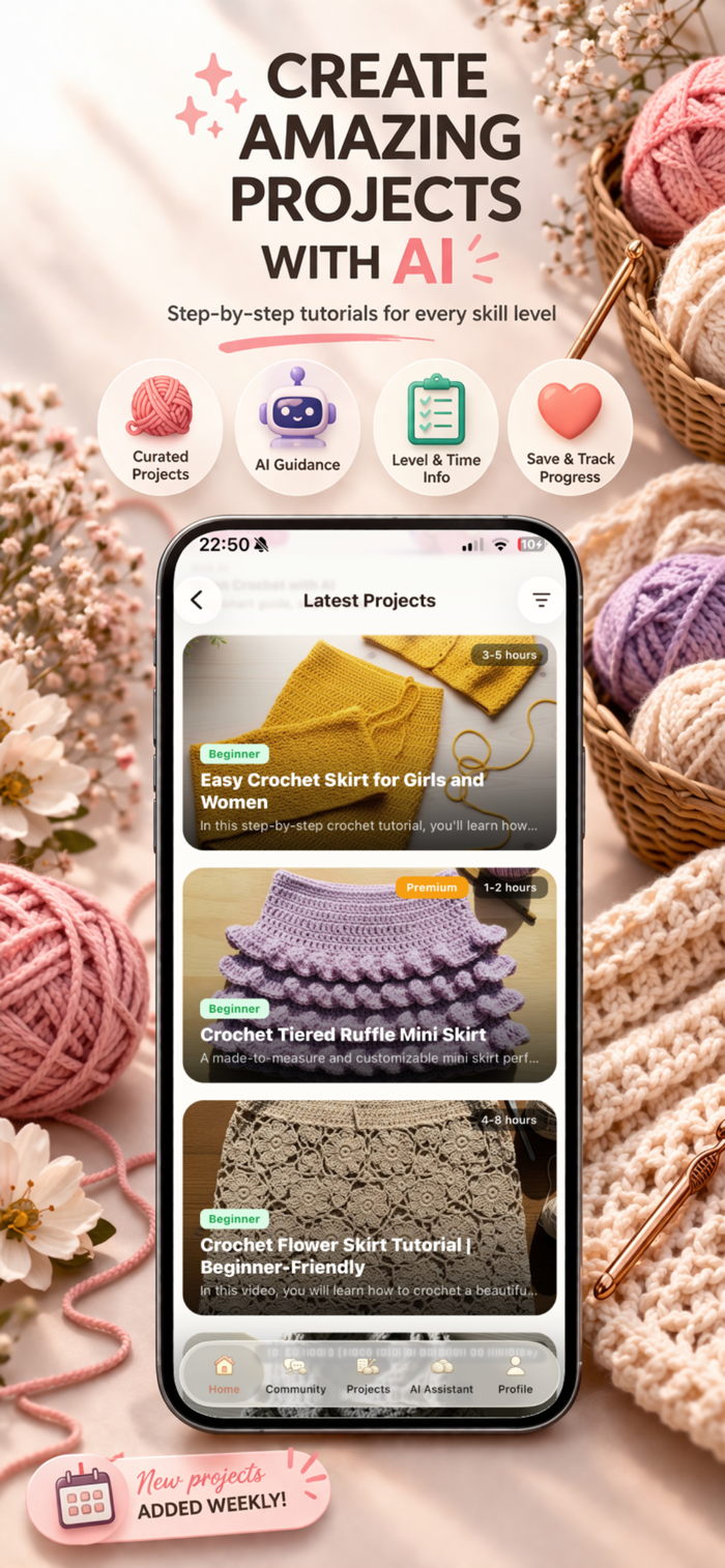Access beginner-friendly knitting tutorials and crochet lessons