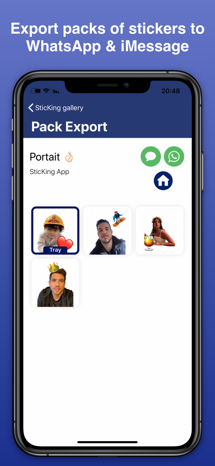 Easily export and share your stickers via WhatsApp and iMessage!