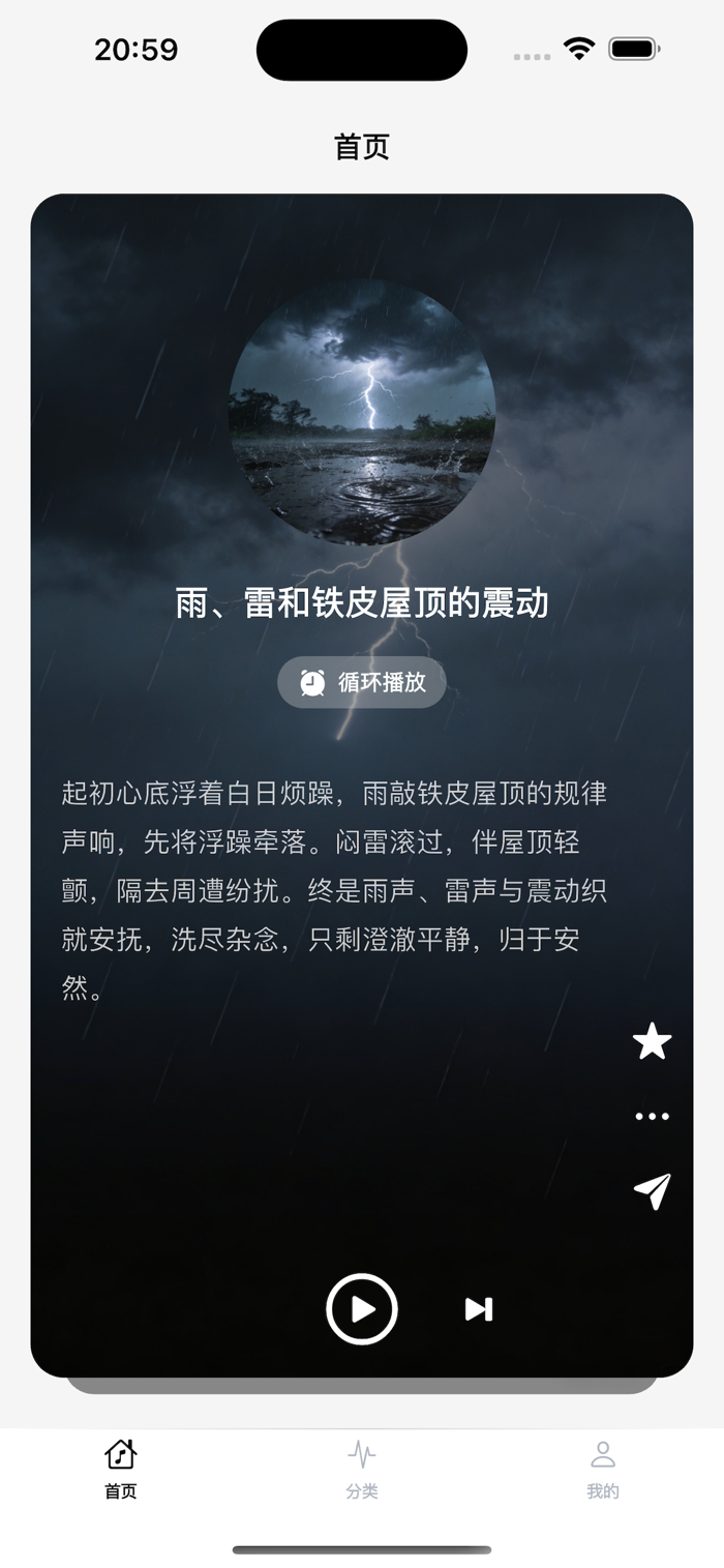 白噪音是专属治愈声疗工具,永久无广告。收录雷暴、鸟鸣、雨声等自然白噪及心跳、冥想引导音,一站式满足多元声疗需求。失眠助眠、烦躁平焦虑、专注隔纷扰。极简清爽界面,无广告沉浸式体验,让你随时沉浸声浪,找回内心平静安稳。