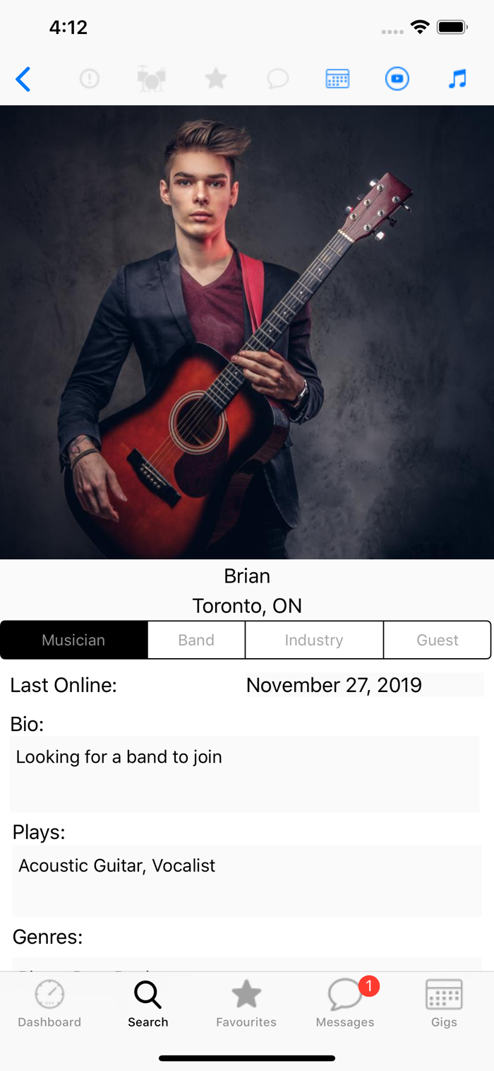 该平台可帮音乐人找乐队或乐队找音乐人,创建个人资料后能听或看音频片段、演出信息,加收藏、私聊、加入乐队等。支持用户在线一对一或群组交流,还能与音乐行业专家联系。具备高级全球搜索功能,可按位置、城市、乐器、流派等筛选。能通过应用内录音机秒录并上传音频片段。