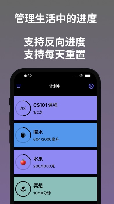 进度记可帮您记录从日常习惯到工作任务的成长变化。具备全方位进度管理,能记好习惯与改掉坏习惯;有向上/向下计数,计数方式灵活;状态分类管理,分计划中、进行中、暂停中、已完成;可个性化标识,用多种图标颜色区分任务;能进度历史回顾;支持单位自定义;应用体验简约;注重隐私保护,数据保存在设备,可iCloud同步备份。提供免费功能,部分高级功能需解锁完整版,遇问题或有建议可邮件联系。