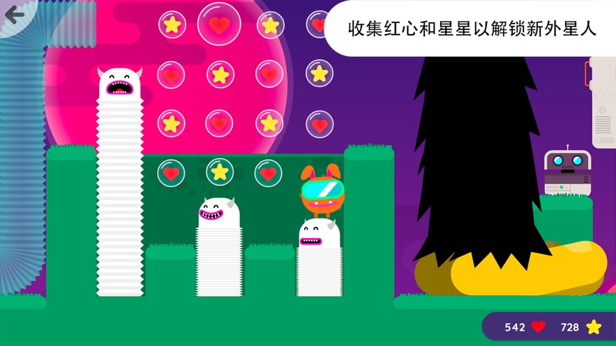 两种难度模式外加无惩罚性无限次重玩机制,确保成人和儿童均能轻松体验 200 余个关卡。玩家可以在旅途中收集星星和红心,并用它们解锁 24 个独特的外星 Thinkroll。