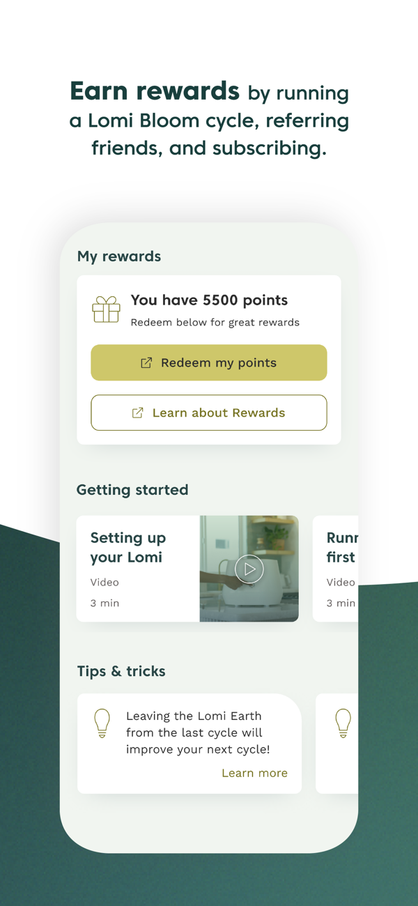 Lomi可处理食物垃圾,让你专注喜欢的事。它能将食物垃圾转化为奖励,通过连接设备、运行程序、推荐朋友和订阅赚取积分,积分可兑换Lomi必需品及日常品牌产品。还能随时查看Lomi状态,追踪运行成效。新应用程序能帮你轻松找到所有问题答案。