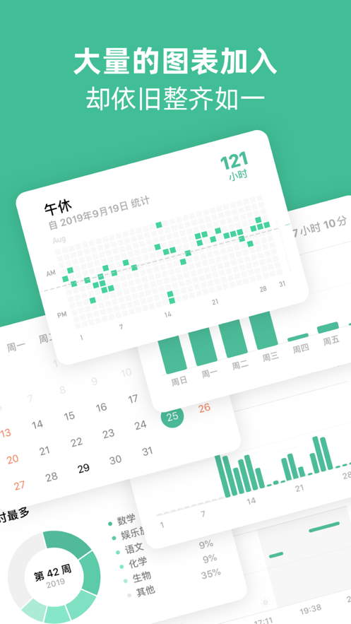 - 丰富的图表,让你积累下每一分钟,都看得到