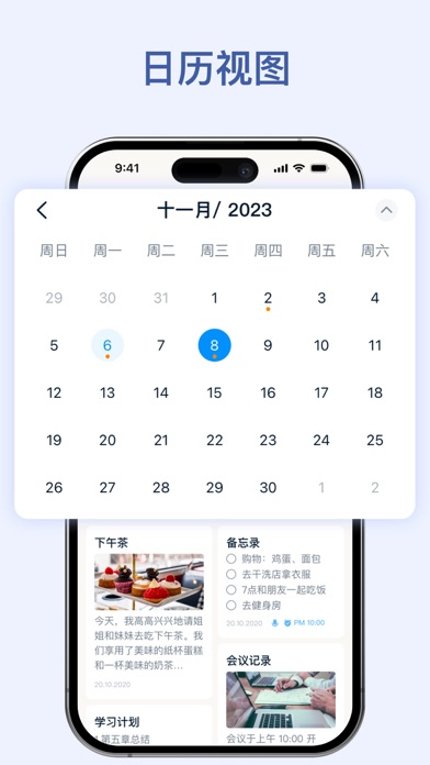 • 通过直观的日历时间线,全面查看你的备忘录、事件和想法。