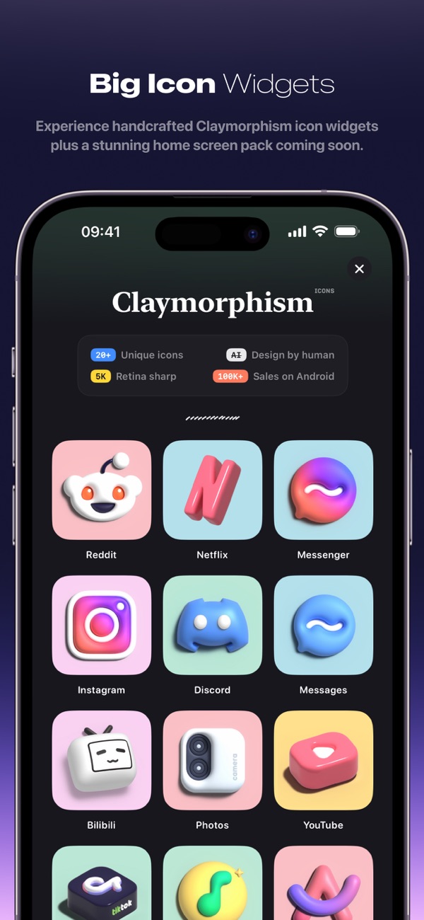 Transparent widgets · Dynamic pets · Icon packs · Standby display · 3D large ico...
