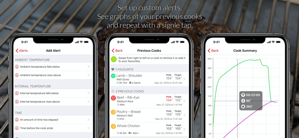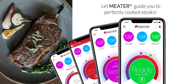 MEATER®是全球首款无线智能肉类温度计,助您每次烹饪都能完美掌握肉类熟度。MEATER®应用结合专用温度计,利用专利算法提供烹饪时间预估,引导您烹饪出最鲜嫩多汁的牛排、鸡肉、火鸡、鱼等。无需时刻守候厨房,MEATER®应用将为您监控食物状态,并通过智能设备提供声音和视觉提示,让您自由享受烹饪的乐趣,专注于生活的其他重要事务。与其他智能肉类温度计不同,MEATER®完全无线设计,让烹饪更加自由便捷。