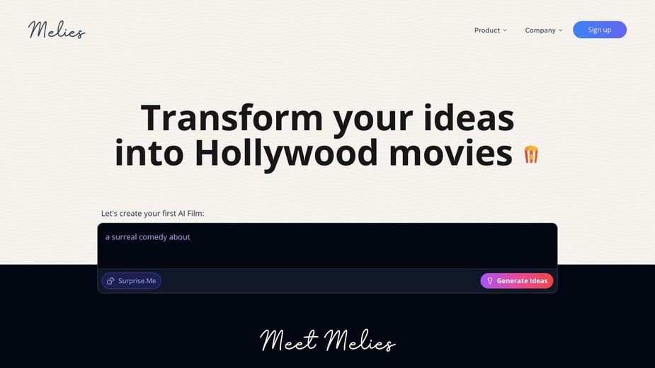 Melies AI电影制作软件,助力创意变身好莱坞电影。提供跨类型、跨风格故事创意生成,支持3D动画、动漫等角色创作。配备AI辅助剧本创作工具,从故事大纲到完整剧本,以及AI视频生成编辑工具,实现从剧本到影片的全程支持。丰富预设场景和素材,让独立电影制作者也能打造高质量影片。