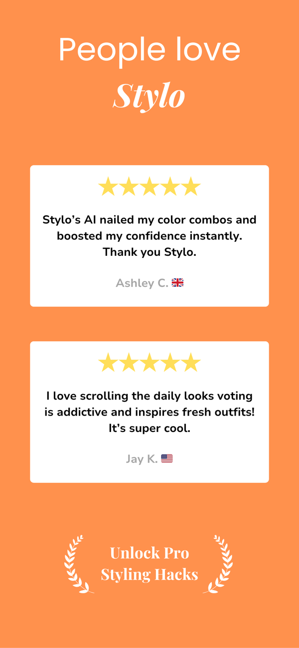 Stylo is an AI‑powered fashion platform that evaluates your looks with objective criteria. Our smart model checks colour harmony, silhouette balance, seasonal trends, and piece coordination; then tells you exactly what you nailed and where you can improve. Join the community to explore other users’ outfits, draw inspiration, and vote for the Best Look of the Day.