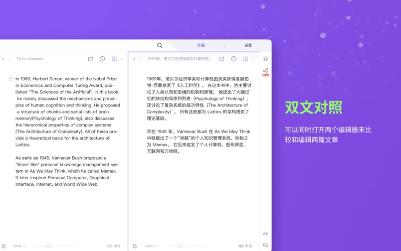 - Dual-screen comparison: Can open two editors simultaneously to compare and edit two articles respectively.
