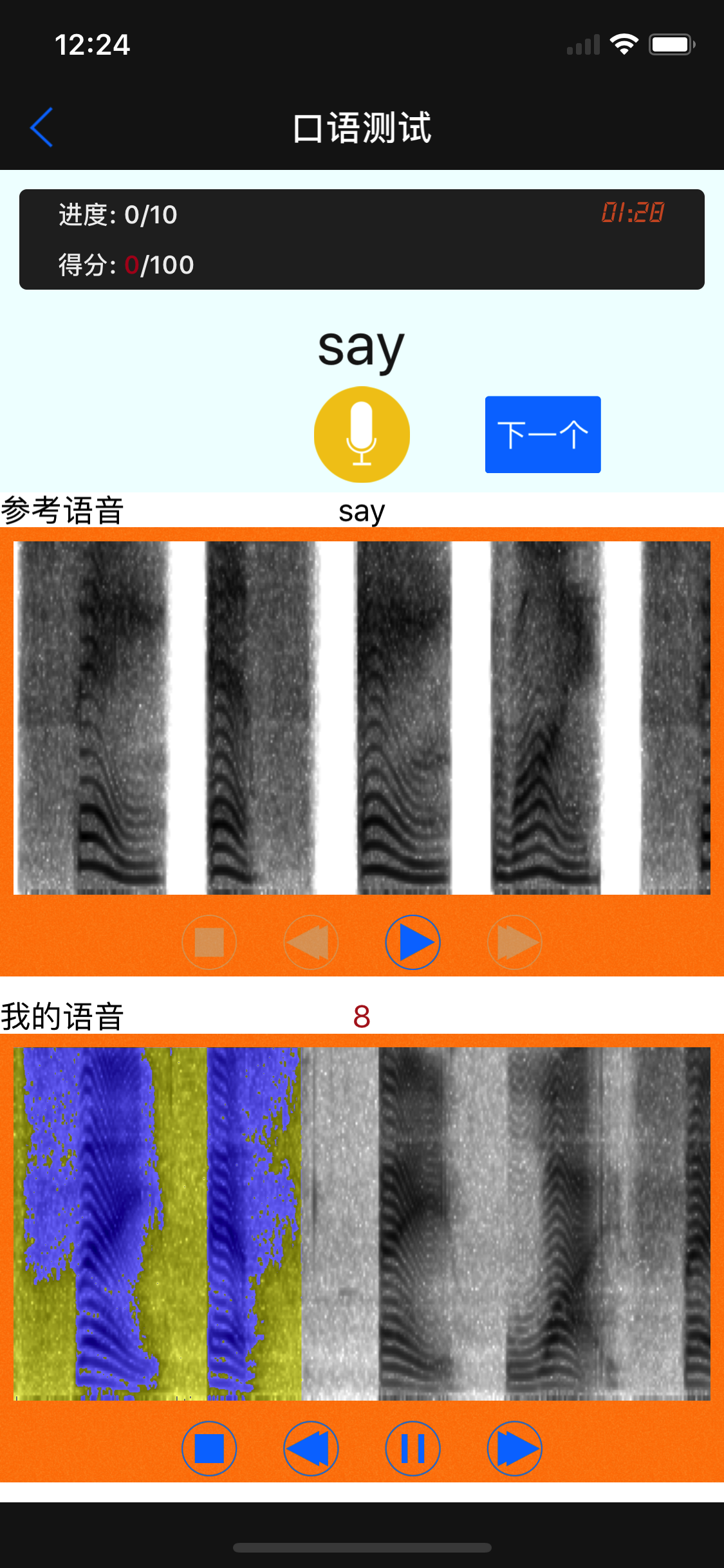 5. 可以录音,与标准发音比对,独家提供物理声纹进行分析和同步播放,帮助理解每个字母发音的本质特征;