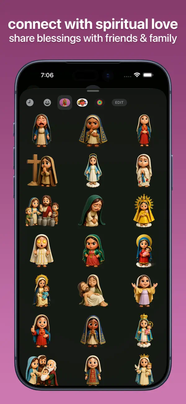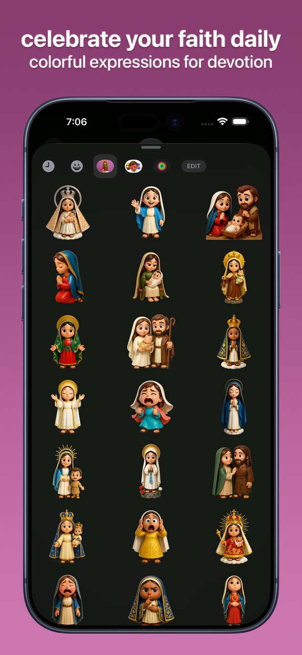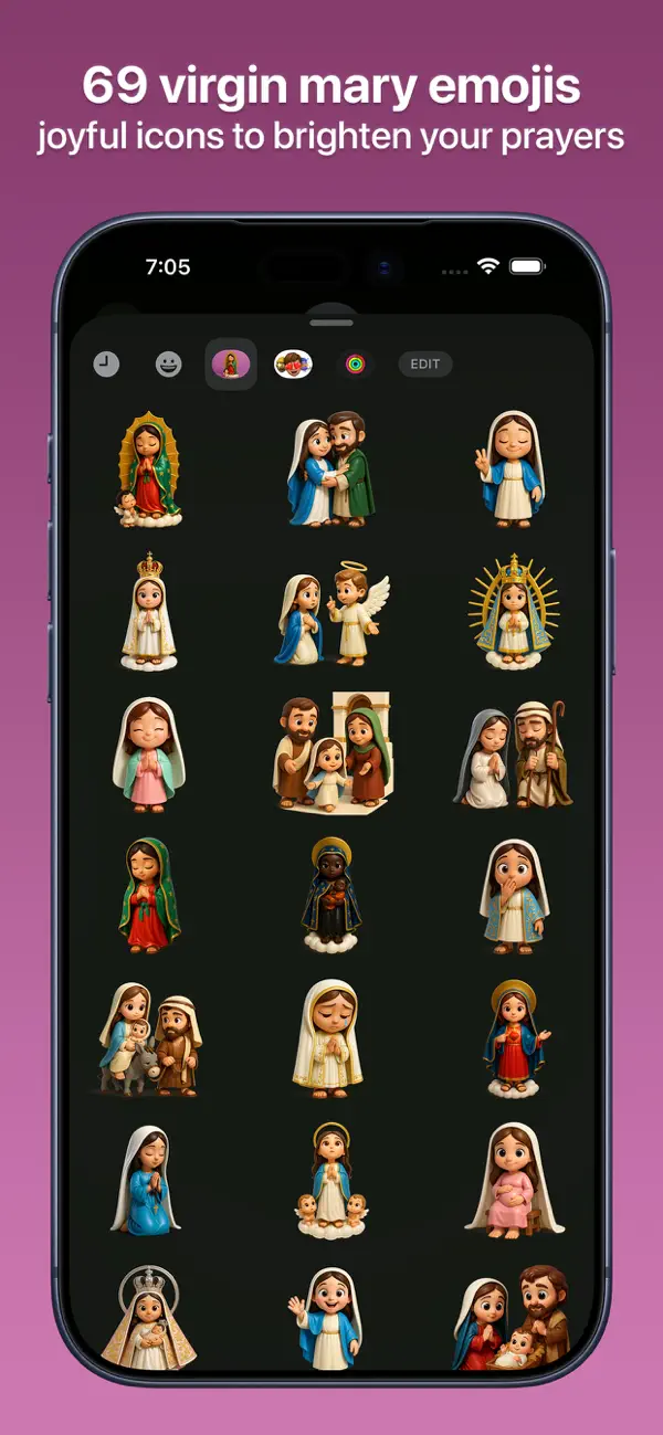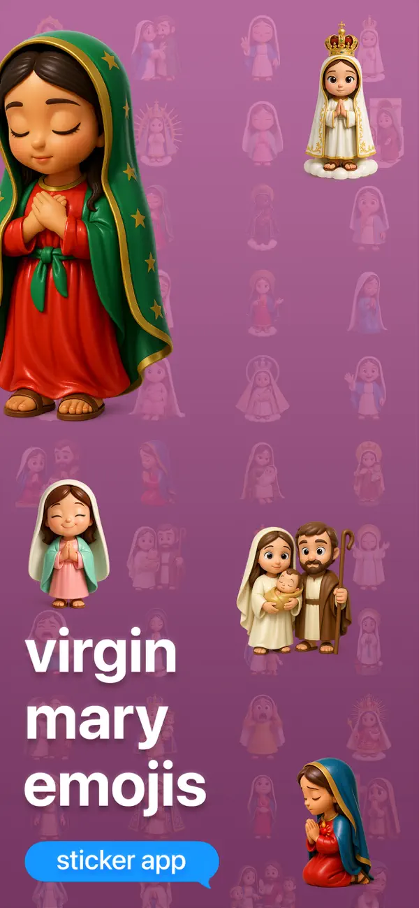 · 69种富有表现力的3D表情符号,描绘神圣场景与情感。· 在每场对话中分享信仰、喜悦与灵感。借助圣母玛利亚表情符号,你的对话将充满生机——69种专属表情符号,用于分享祈祷、祝福、奇迹与每日灵感的体验。立即下载,让信仰、喜悦与虔诚融入每一场对话。