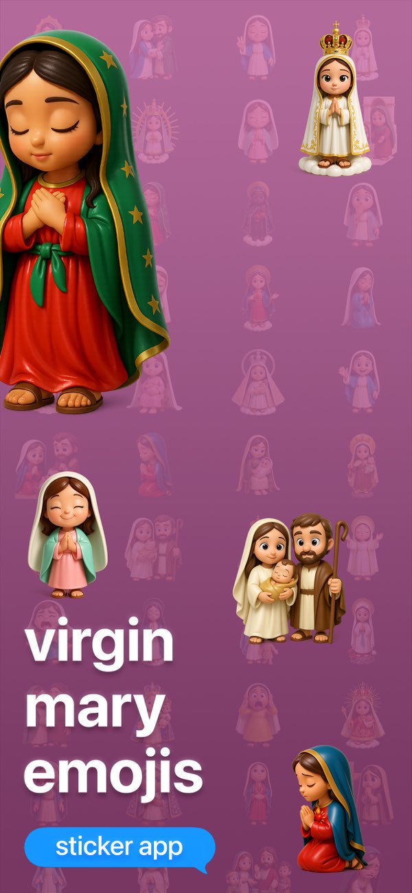圣母玛利亚始终是全球希望、爱与灵感的象征。现在,你可以在聊天中使用 69 款专属圣母玛利亚表情符号来表达这种虔诚之情。这些表情符号均以优质 3D 卡通风格精心打造,色彩鲜艳,细节生动。无论你想表达祈祷、感激、喜悦、悲伤还是庆祝之情,这套表情符号都能为每个时刻提供完美的表达方式。这不仅仅是关于传统——更是关于通过信仰来表达情感。从宁静的祈祷到灿烂的微笑,从诞生与受孕场景到独特表情符号(如心心眼、沉默手势)等,应有尽有无论是赞同还是反对,每幅设计都以文字无法完全表达的方式捕捉了玛丽的神圣存在。可以在家庭聚会、节日庆典、九日敬礼、圣诞节、复活节,或任何你想表达鼓励、祝福或灵感的时刻使用它们。包含表情符号: