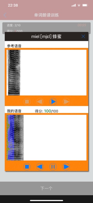 5. 可以录音,与标准发音比对,独家提供物理声纹进行分析和同步播放,帮助理解法语音标发音的本质特征;