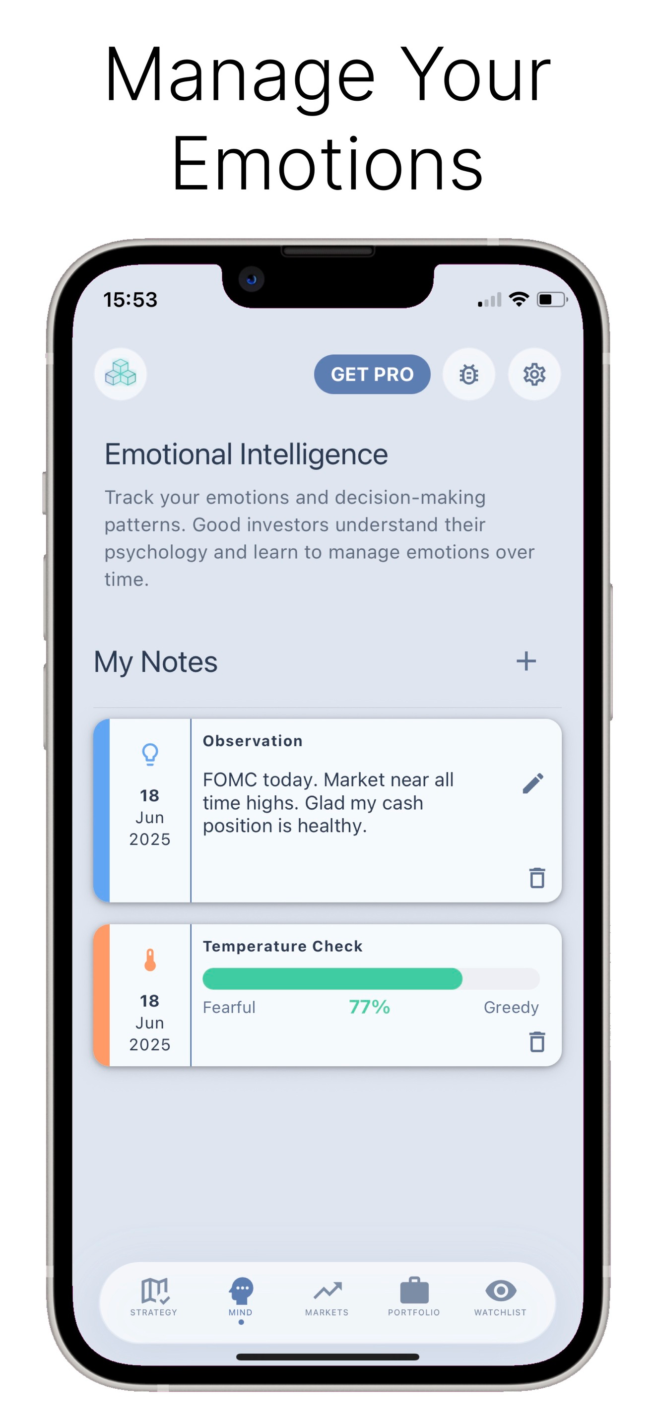 • Track your emotional temperature during market events
