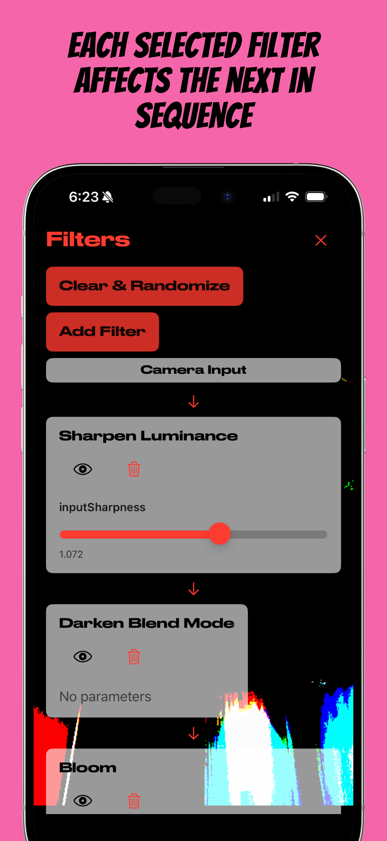 欢迎来到 Distorted——一款富有艺术感的相机应用,它结合了随机排列的滤镜序列,以营造出怪异、失真的效果!Distorted 能将你的相机转变为一张时而带有瑕疵、时而呈现像素化、且始终带有情绪色彩的画布,借助滤镜的组合来实现这一效果。我们为每场拍摄预先加载了一系列随机滤镜。每个滤镜都会影响序列中的下一个滤镜,且可通过各种属性进行操作,如强度、锐度、半径、级别、色彩等,可供选择的滤镜多达 100 种。点击调色板图标即可立即更改应用界面色彩。找到你喜欢的滤镜链了吗?将其保存至您自己的滤镜链库以备后续使用。并通过我们的应用内购功能升级您的下载内容,以解锁无限次的相机拍摄和视频录制功能。此外,通过添加特定滤镜(可按名称选择)进一步深入定制过程,以打造您心目中完美的视觉效果。准备好将平凡之物转化为艺术品了吗?立即下载《扭曲》并开始创作吧。