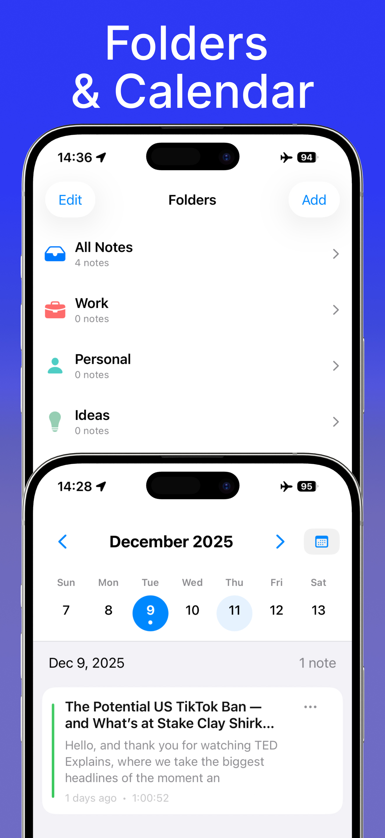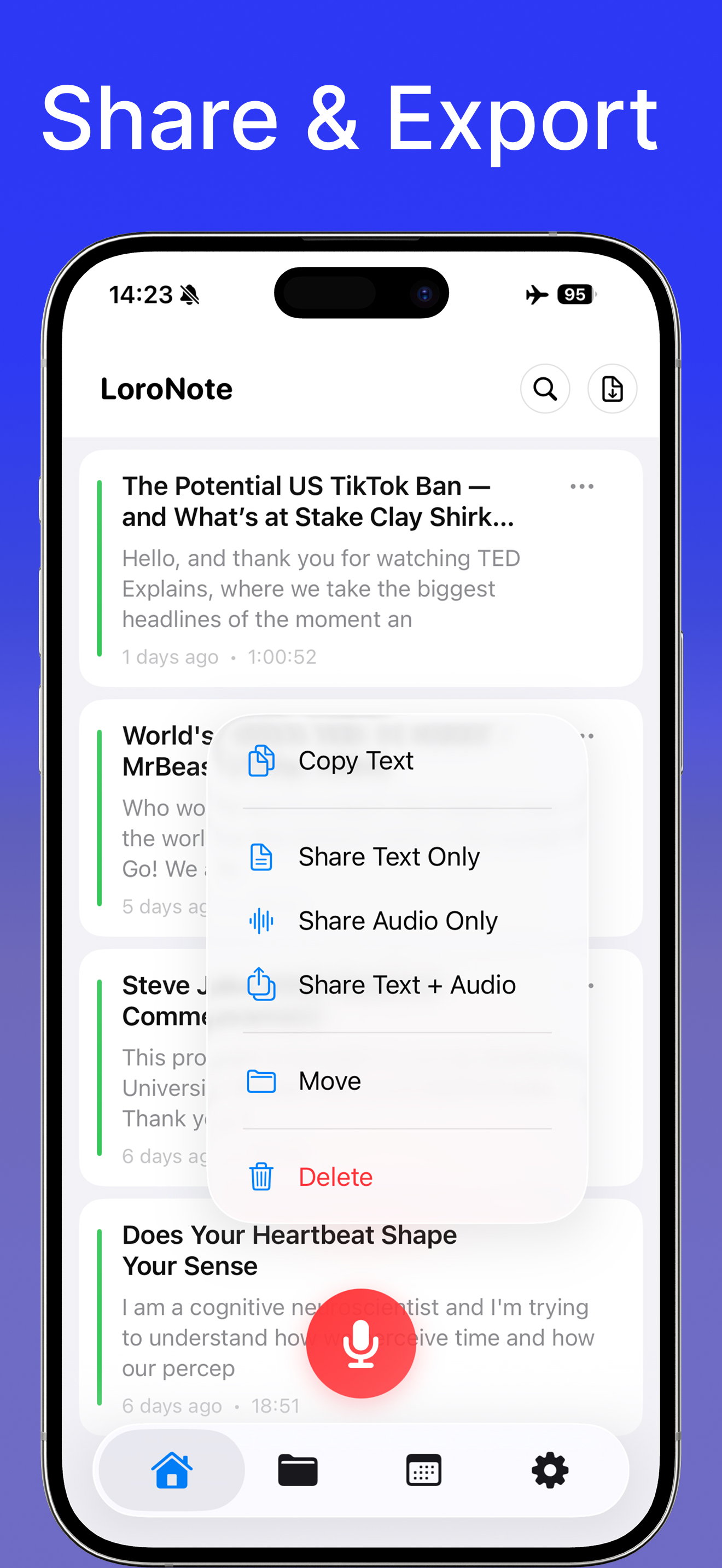 All transcription is processed 100% on-device, ensuring your data never leaves your phone.