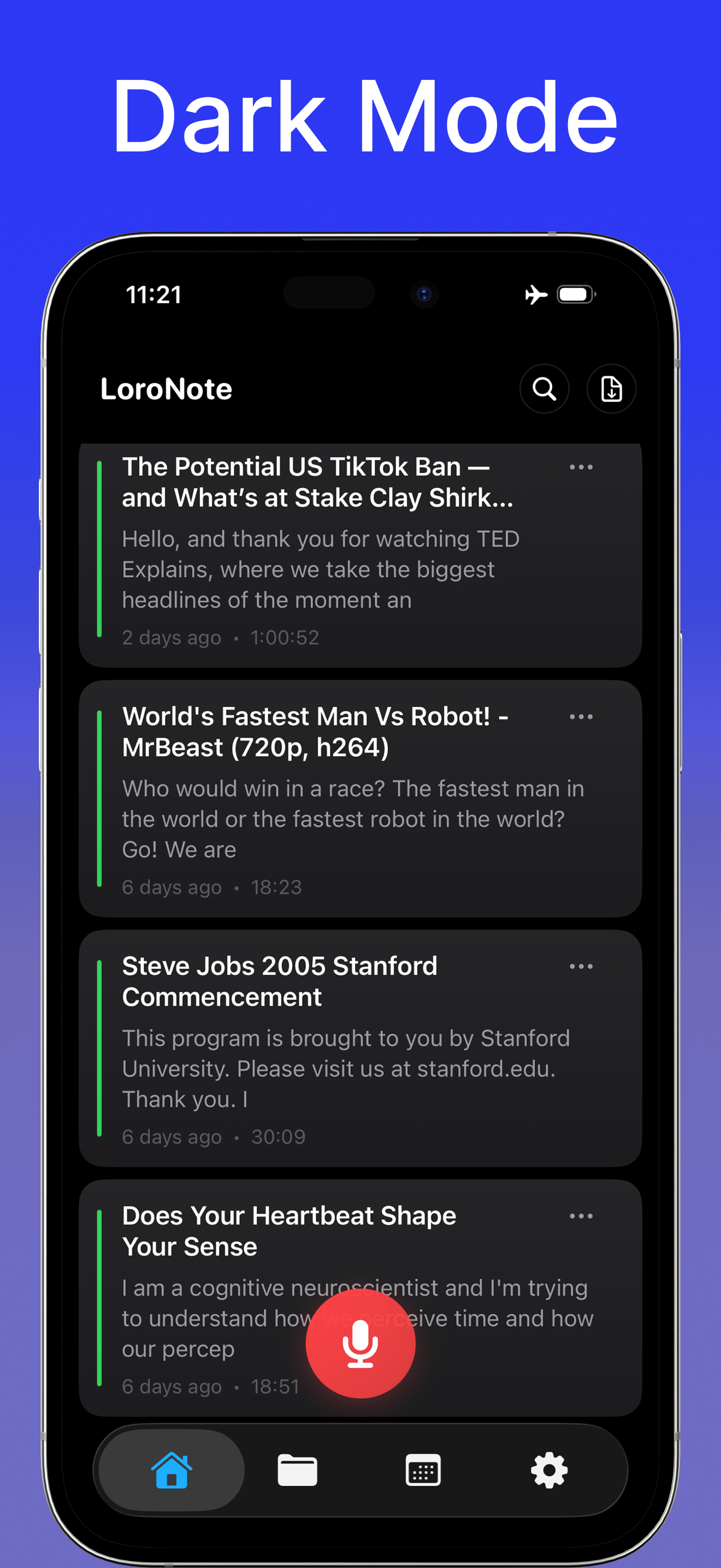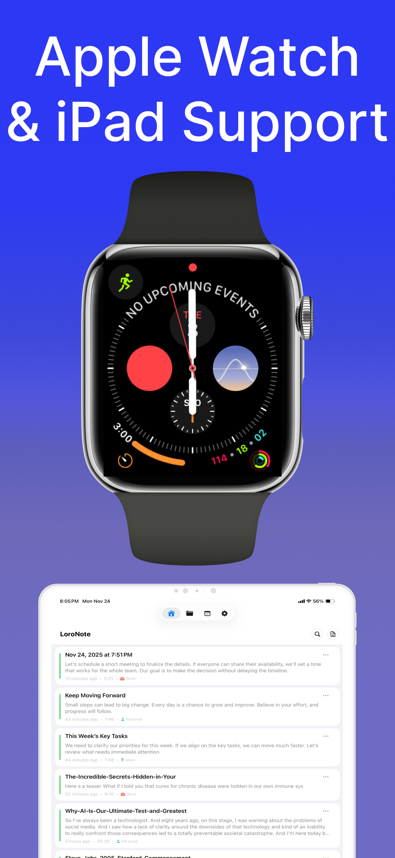LoroNote integrates seamlessly with Apple Intelligence to help you instantly understand long recordings.