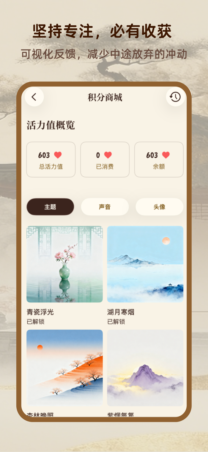• 国风成就勋章:所有日积月累的坚持,都会化作雅致古典专属徽章。专属成就墙见证你的自律蜕变