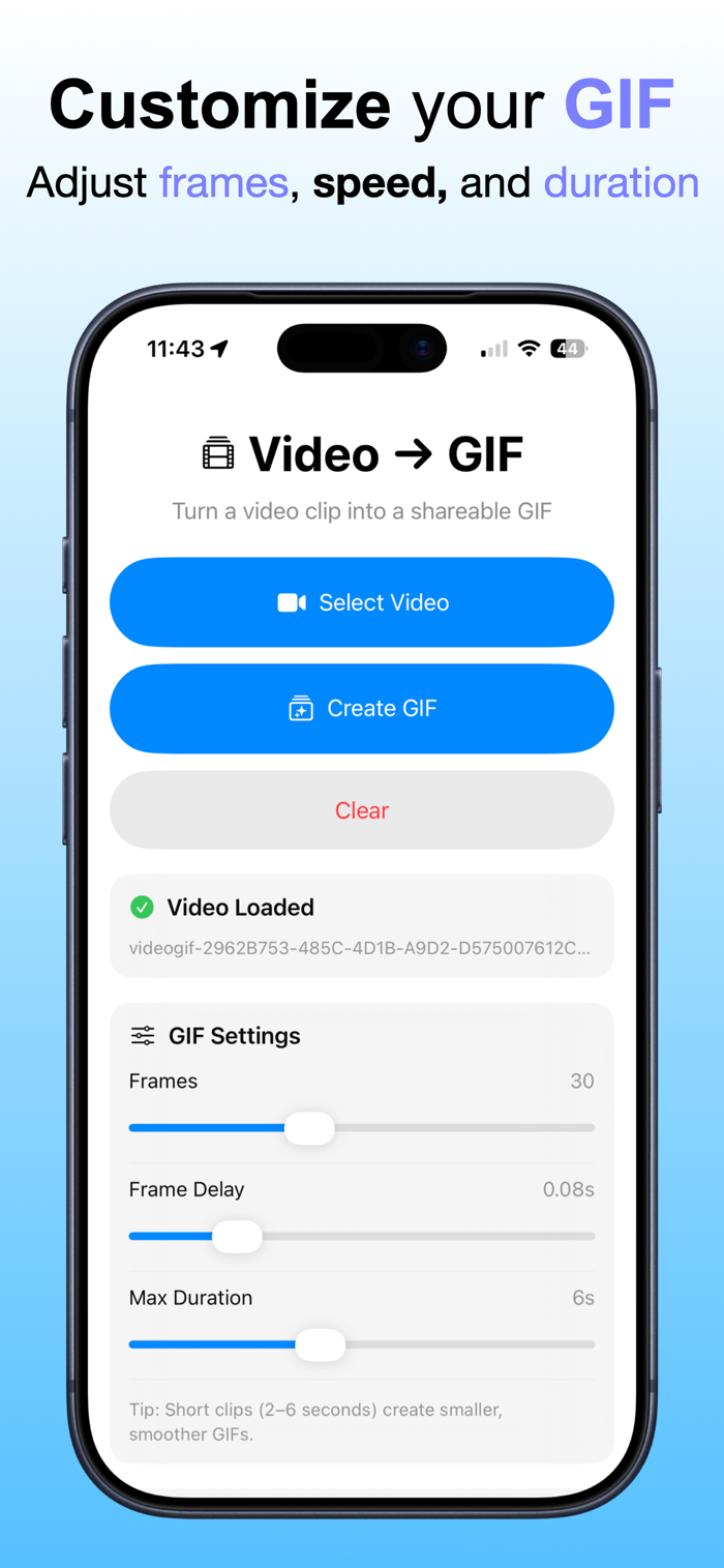 Make clean, shareable GIFs from your videos in seconds — right on your iPhone.