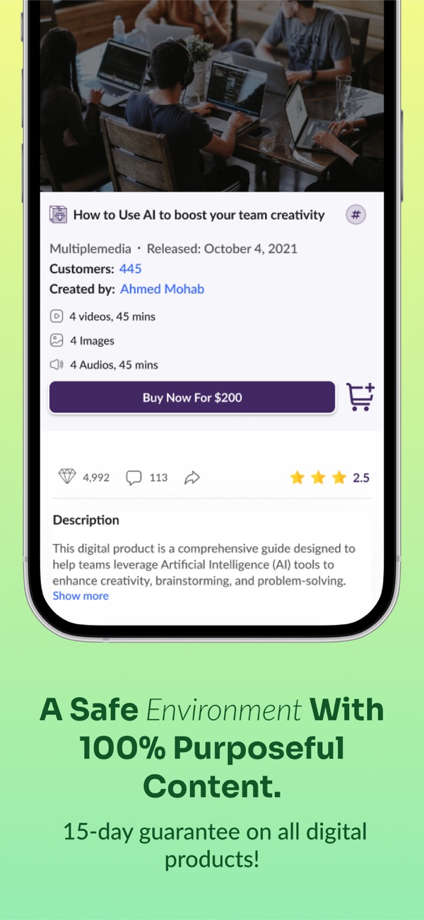 Earn on your own terms—whether through paid content, affiliate partnerships, or collaborative projects with other creators. MUAB is designed to help you transform your unique knowledge into profitable ventures.