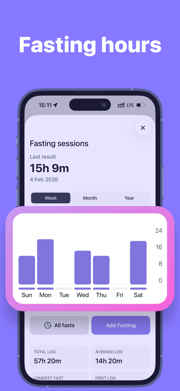 The Fasting Tracker helps with natural weight loss. Whether you're a beginner or experienced, it can simply burn fat, boost metabolism, and help you develop healthy habits. Start the fasting timer with a single click. You can choose popular plans such as 16:8, 18:6, OMAD, etc., and the app will guide you throughout the process. It can track your weight, monitor the fat-burning zone, provide insights into the fasting phase, and there are also intelligent reminders. The interface is simple and distraction-free, supports offline use, helps with weight loss, improves metabolism, and promotes mindful eating, making fasting easier.