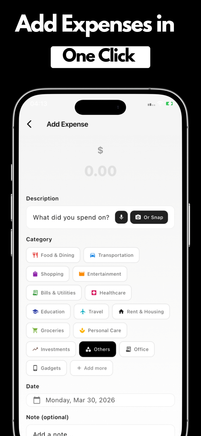 Log your daily expenses in seconds. Categorize transactions, add notes, and monitor every dollar you spend. Spend makes expense tracking simple, fast, and accurate so you always know where your money goes.