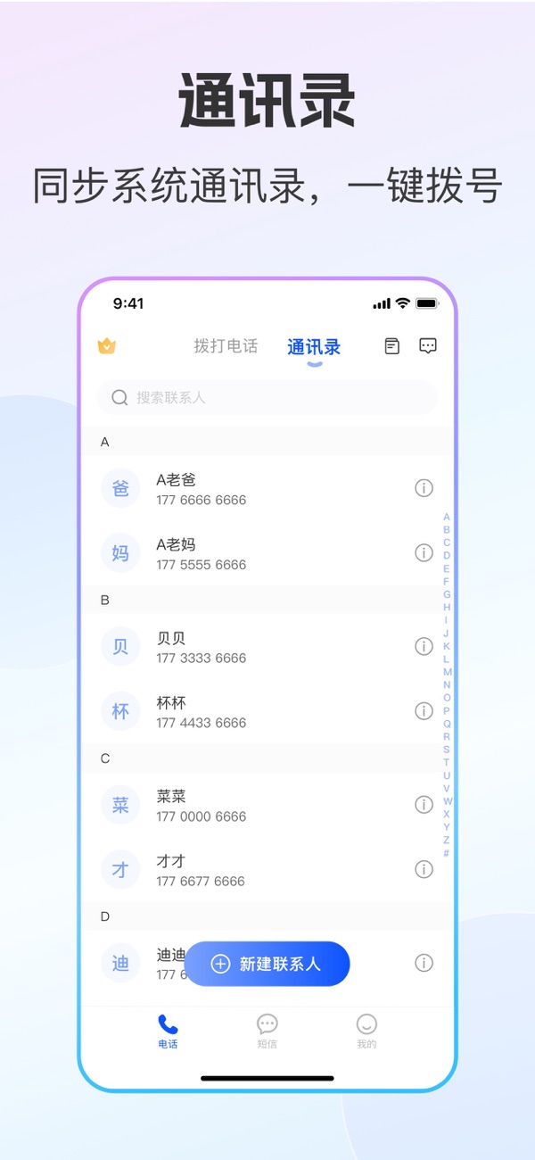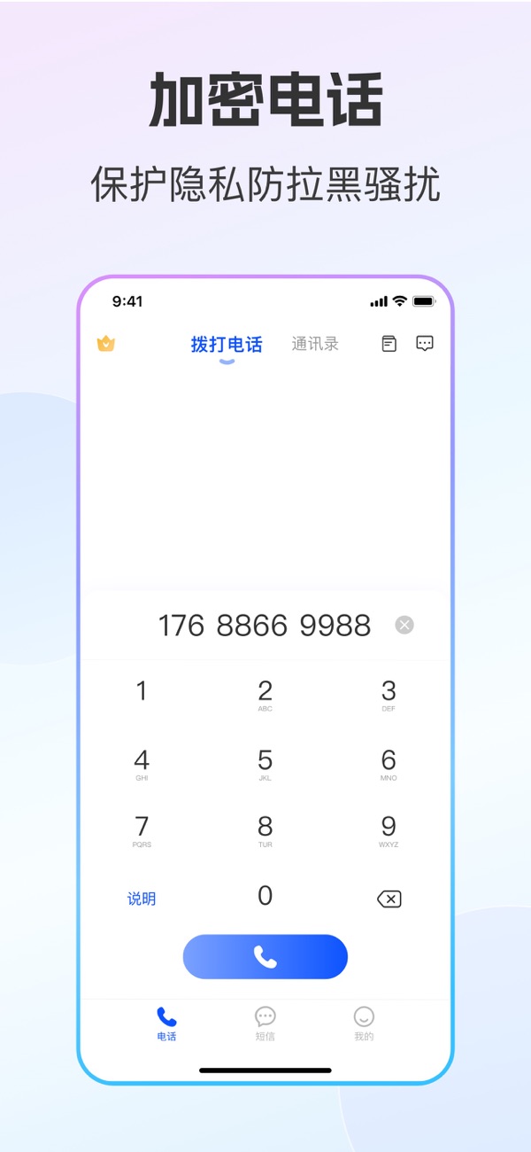 本应用提供稳定的网络电话与短信服务。通话及短信均通过平台进行连接与发送,对方将看到平台号码显示。依托网络传输技术,提升通话清晰度与连接稳定性,满足日常沟通需求。