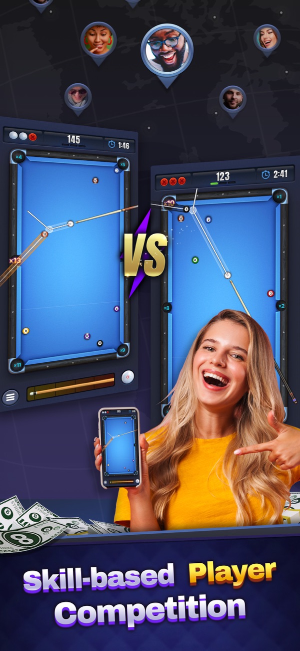-Play in 8-ball tournaments of different match modes with multiple other players. The higher you rank, the bigger the prize! Practice for free before playing Cash Matches, then choose from a variety of prize pools to win REAL CASH and/or in-game items through precise 8-ball shots and clean strikes.