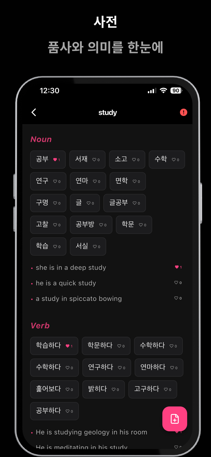 복잡한 사전은 그만! 검색한 단어의 뜻과 품사별 쓰임새를 직관적이고 깔끔하게 분류하여 보여줍니다.