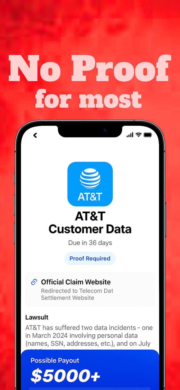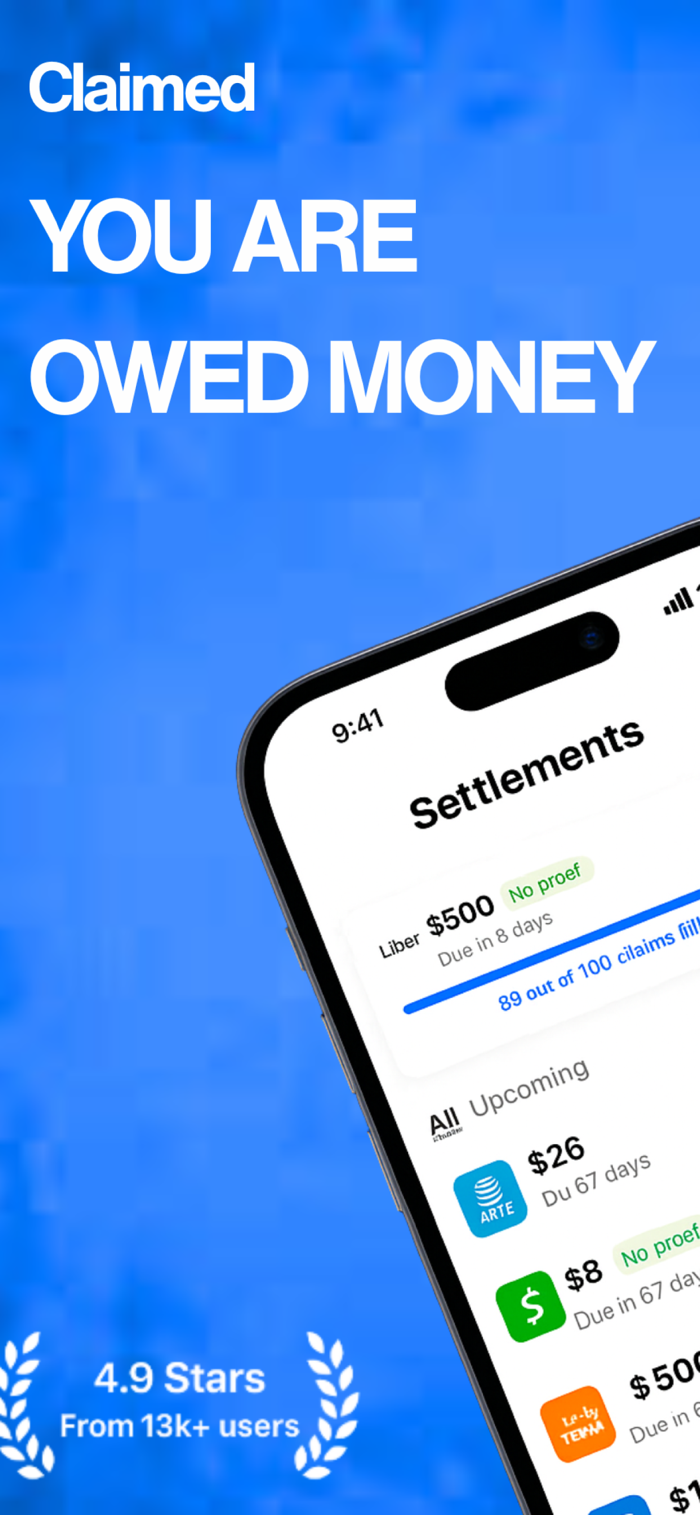 Claimed助您快速、轻松、无压力地发现并领取集体诉讼和解金。智能和解金查找器,依据日常使用的产品、服务和订阅自动匹配 eligible集体诉讼。一键索赔,几秒内通过引导表格和自动填充提交。用户每年平均从现行和解金中获利超300美元。有截止日期提醒,不会错过赔付。信息加密,安全私密,仅用于处理合法索赔。浏览集体诉讼和解金,查看是否符合条件,通过应用提交索赔,和解金处理后获赔付。查找索赔需应用内购买访问。