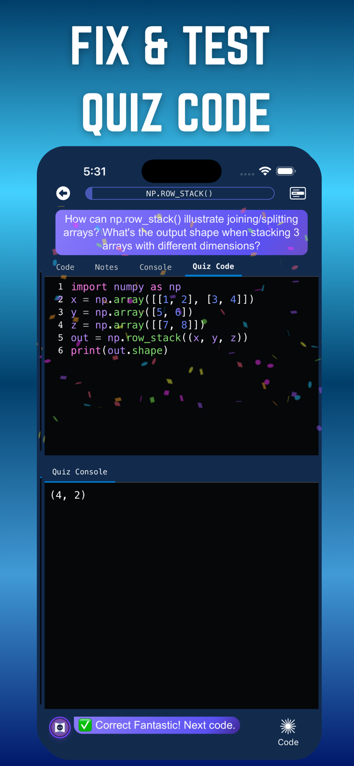 PythonAI助力快速学Python,能生成可用Python代码,实时运行并输出,逐行清晰解释,还有简短测验巩固学习。具备生成代码、执行代码、生成解释、生成测验功能。为移动端设计,界面简洁专注,适合初学者和专业人士,适用于快速脚本编写、学习冲刺及复习,无广告,网络连接用于AI代码生成和内容更新,使用条款和隐私政策可查看官网。