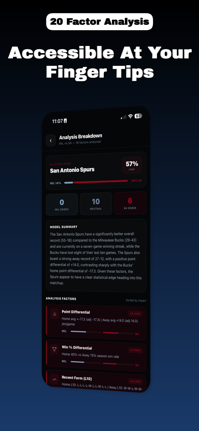 - "Why This Pick" breakdowns powered by 16 analysis factors