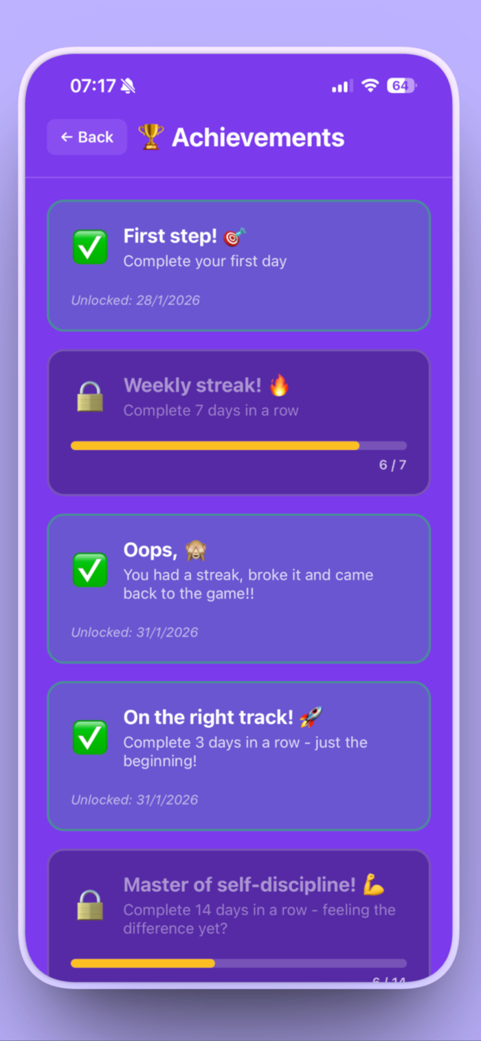 HabitShield is the ultimate guardian of your discipline. It helps you not only set ambitious goals but, more importantly, defend them against daily distractions. In a world full of noise, HabitShield becomes your personal fortress against procrastination.