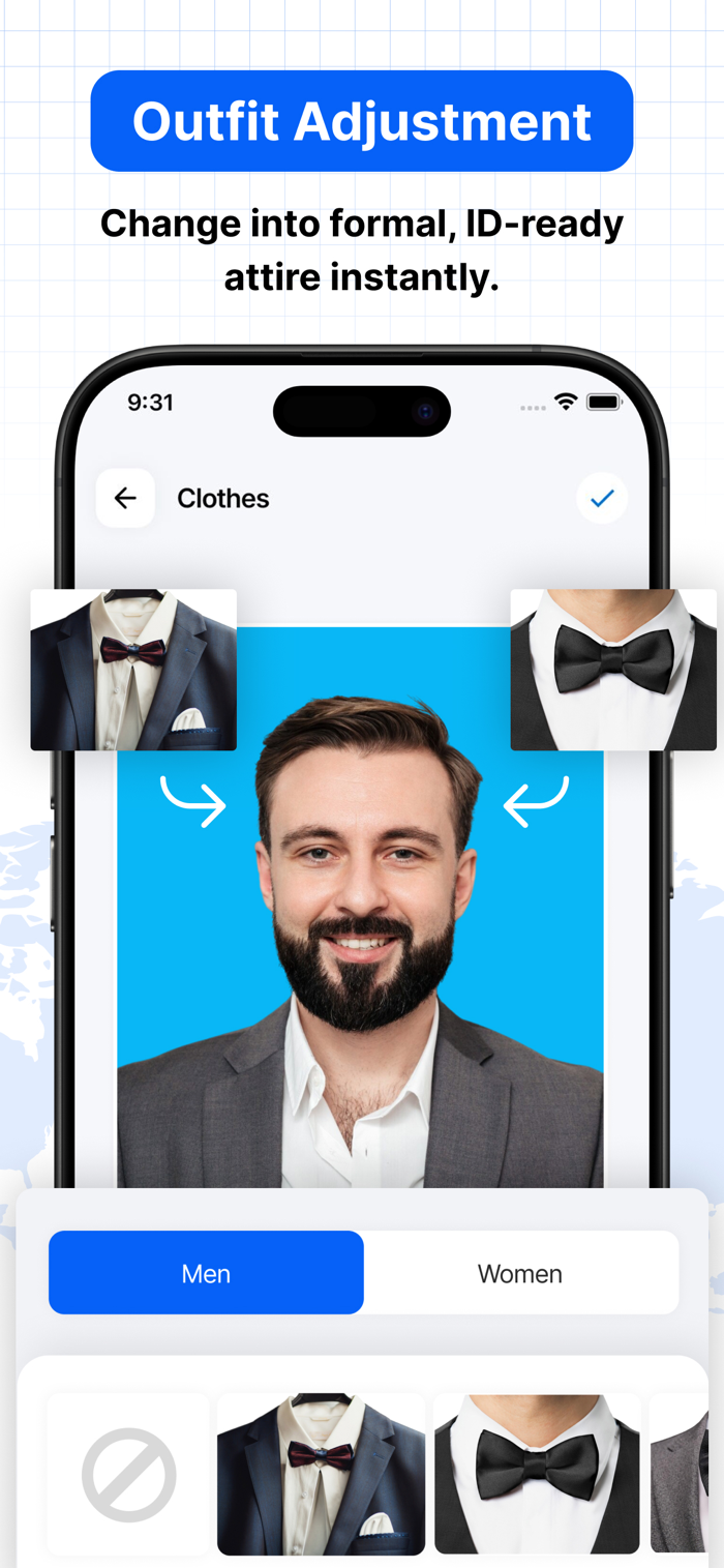 Whether you need a US passport photo (2x2"), a UK passport photo (35x45mm), a Schengen visa photo, or a biometric ID photo, our app handles every format automatically.
