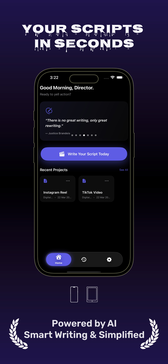 AI Script Writer & Ideas is an advanced AI-powered script writing app designed for filmmakers, storytellers, content creators, and screenwriters. Whether you're writing a film, YouTube video, short story, TV show, ad script, or social media content, this app helps you generate complete, production-ready scripts with intelligent structure and creative depth.