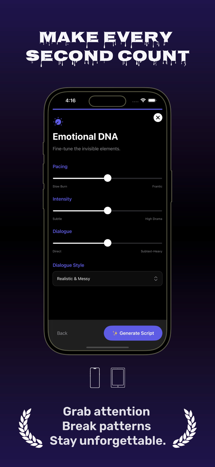 Create stories, design characters, plan scenes, and prepare your shoot — all in one powerful AI script writing app.